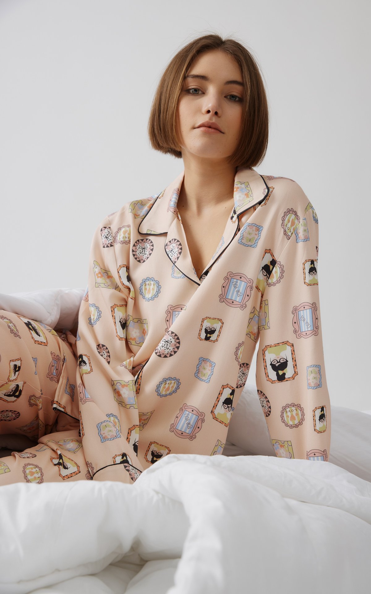 Εμπριμέ πυτζάμα από ύφασμα viscose.