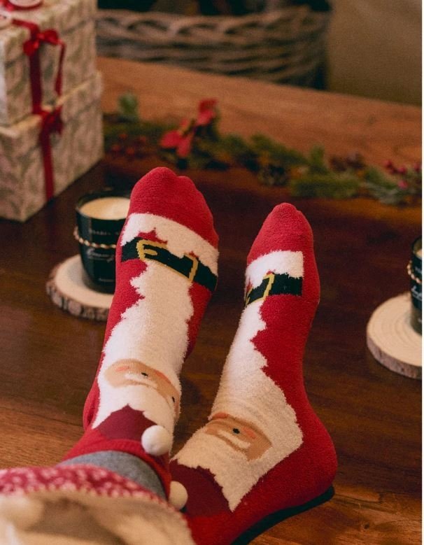 Χριστουγεννιάτικη μπουκλέ καλτσοπαντόφλα.
