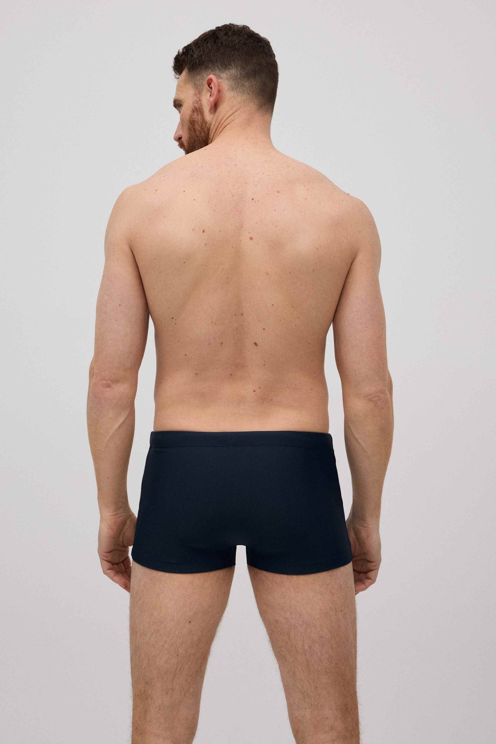 Εφαρμοστό μαγιό boxer με φαρδύ, ντυμένο λάστιχο στη μέση και εσωτερικό κορδόνι.