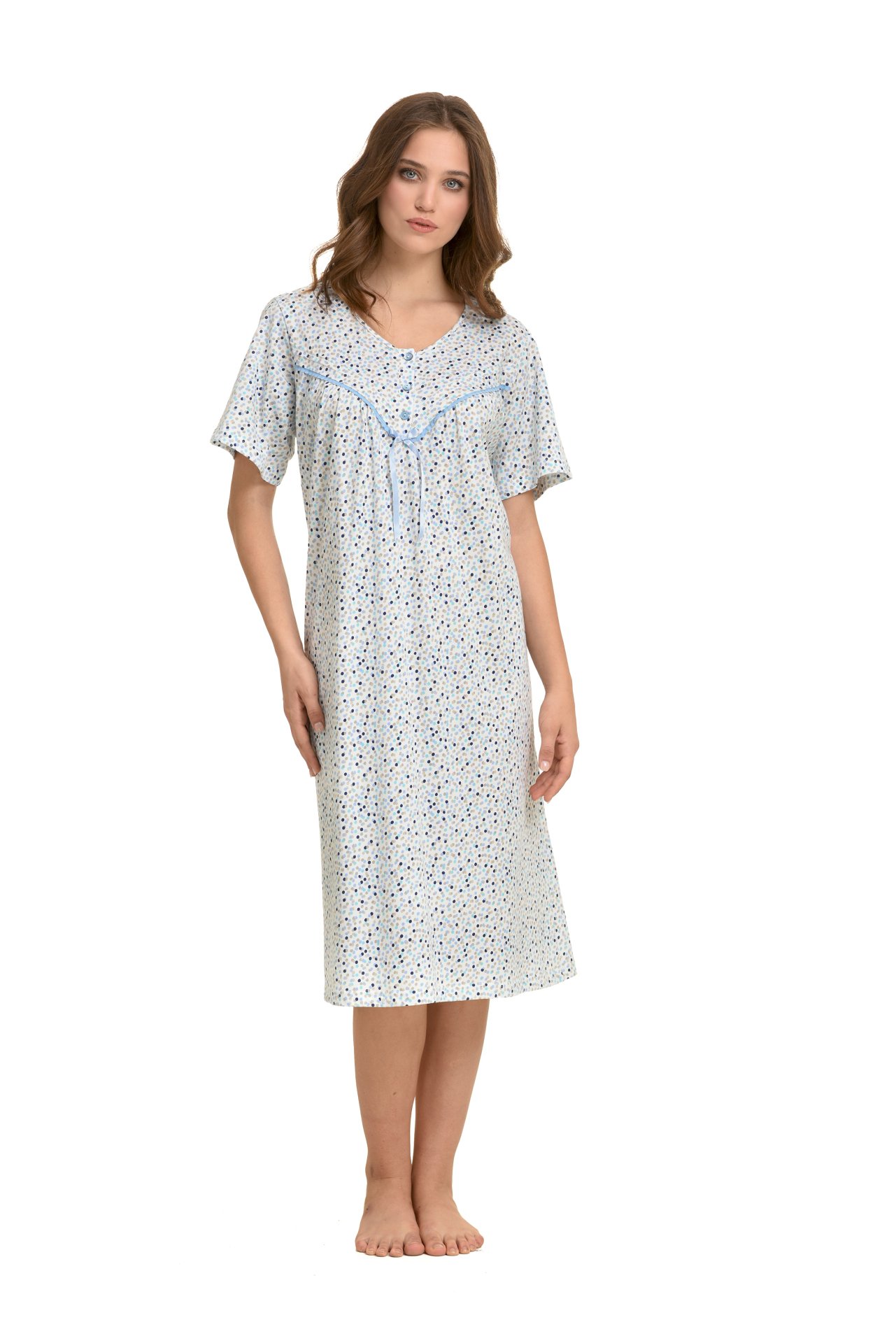 Κοντομάνικο νυχτικό με πολύχρωμα πουά σε όλο το ύφασμα.