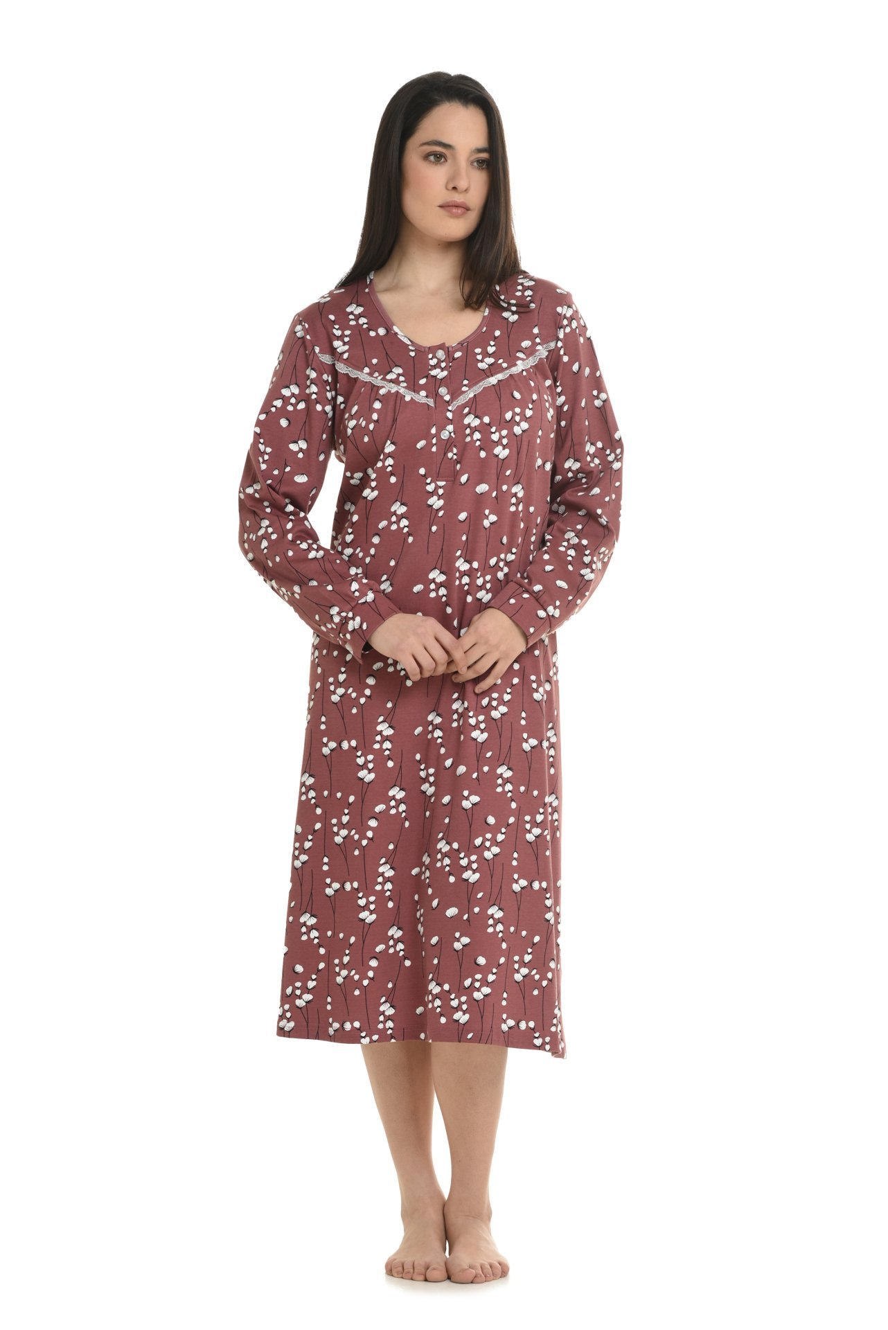 Νυχτικό με μακρύ μανίκι που καταλήγει σε μανσέτα.