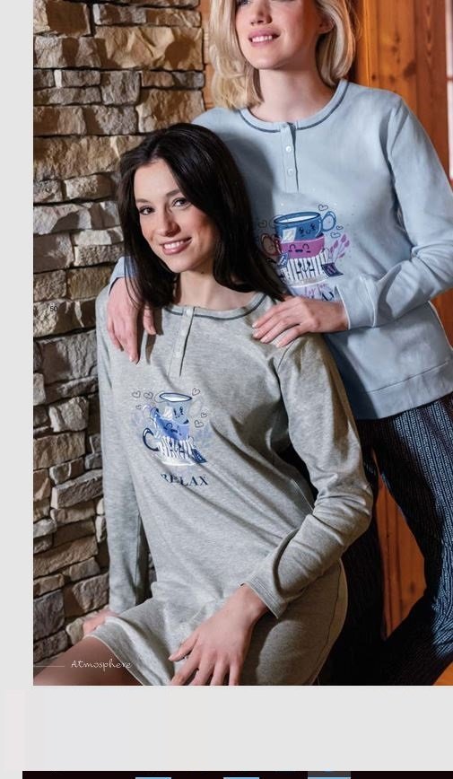 Μακρυμάνικο νυχτικό με πατιλέτα και τύπωμα στο κέντρο.