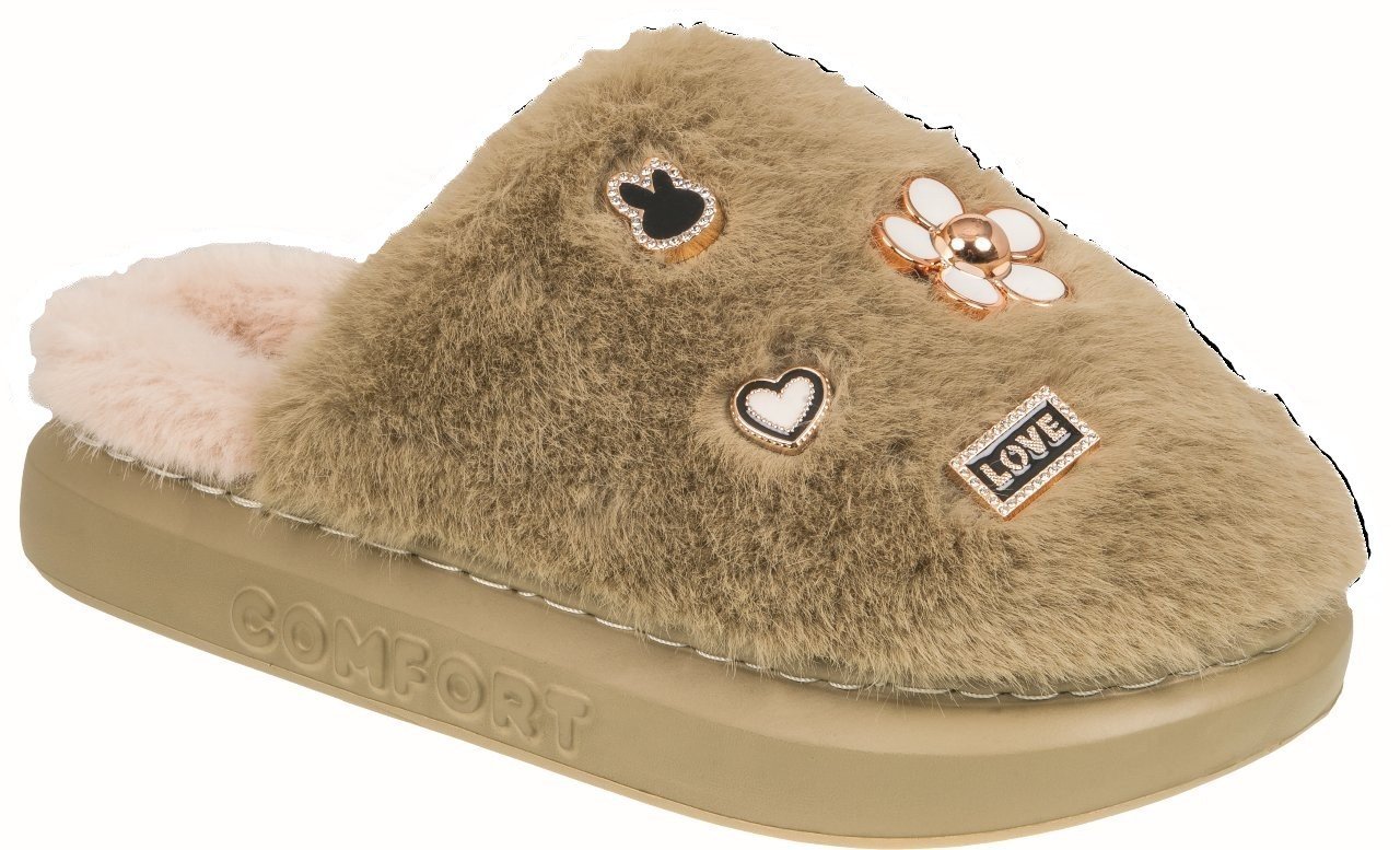 Γούνινη παντόφλα με διακοσμητικά piΝs.