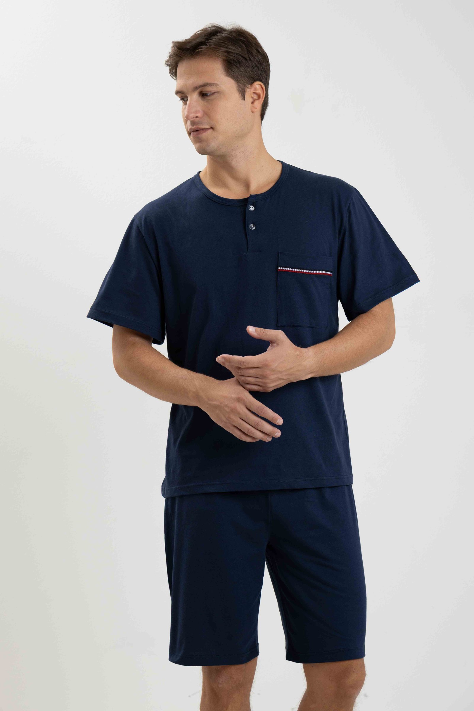 Τα κάτω μέρη είναι μονόχρωμη βερμούδα και μακρύ παντελόνι με εσωτερικό λάστιχο στη μέση.