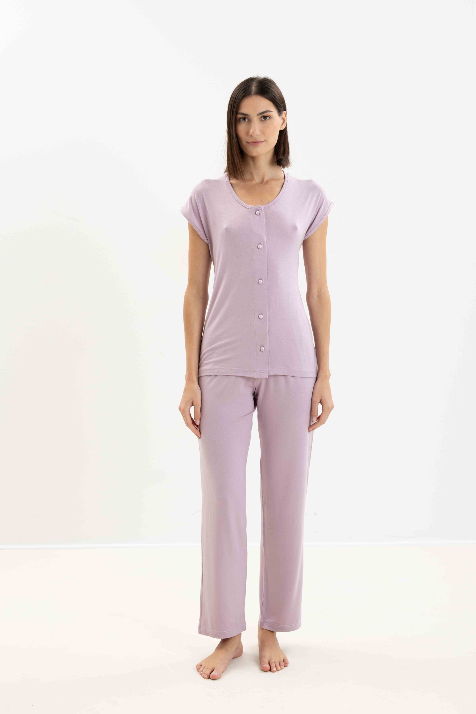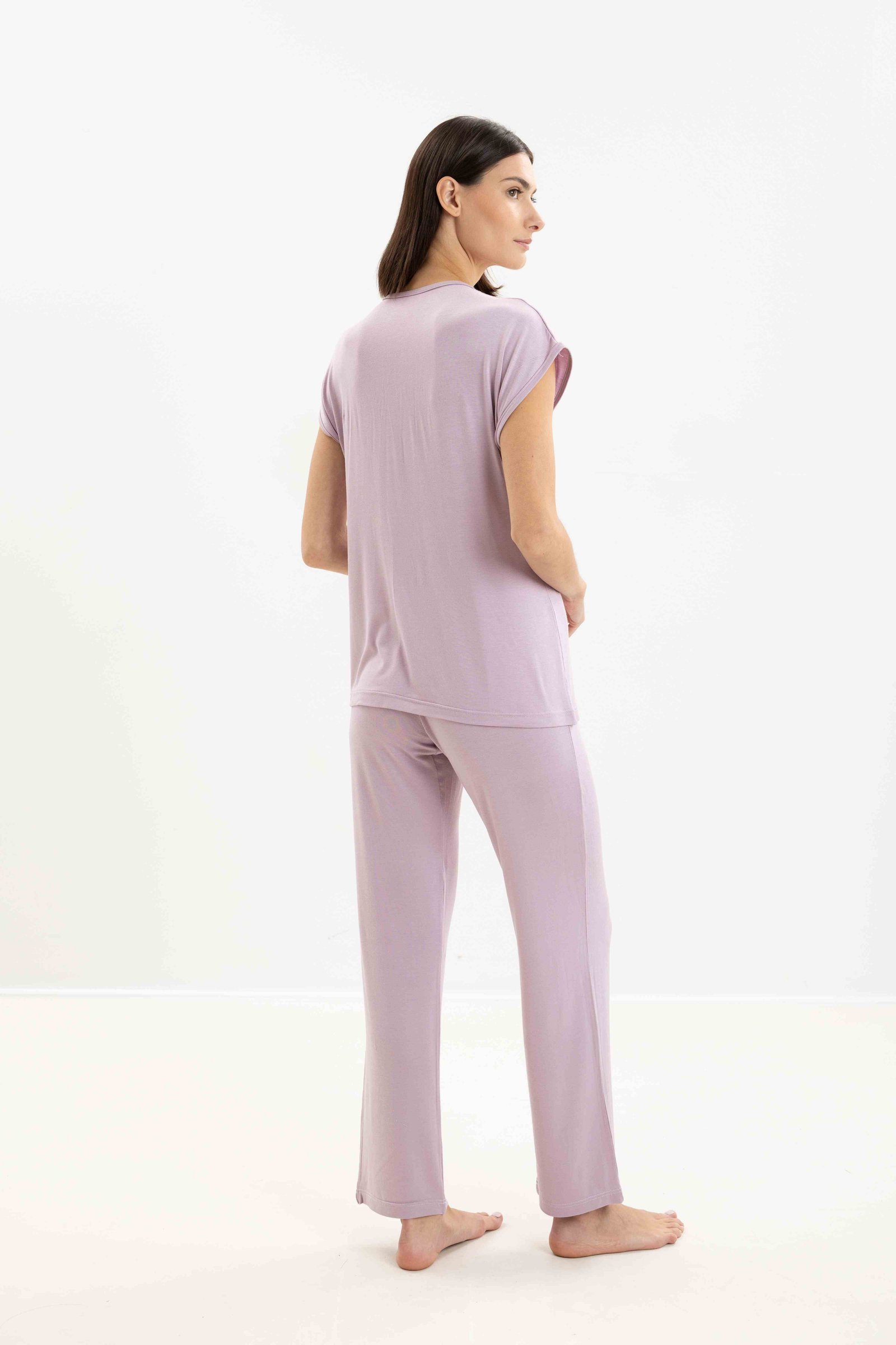 Μονόχρωμη πυτζάμα από ύφασμα viscose.