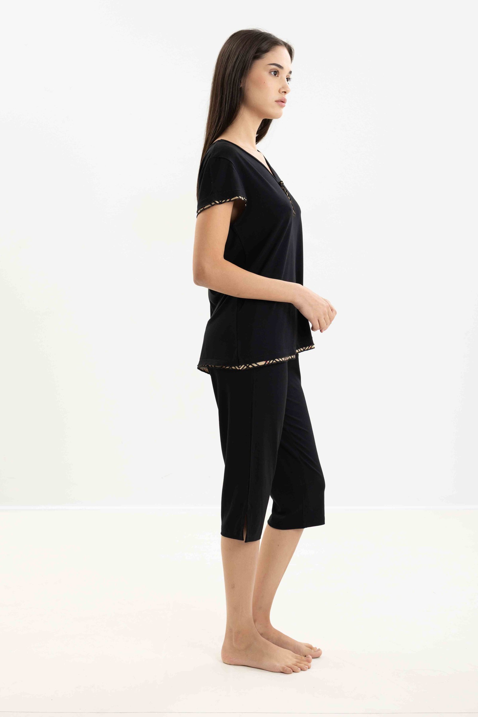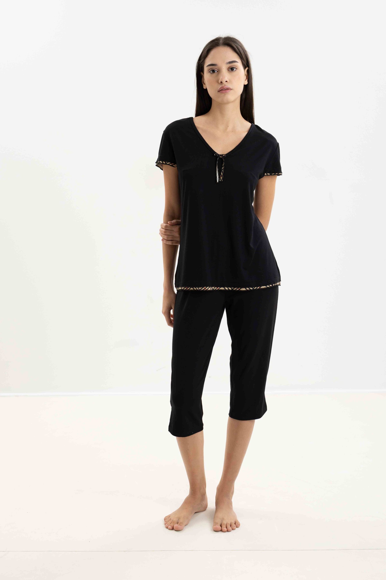 Μονόχρωμη πυτζάμα από ύφασμα viscose.
