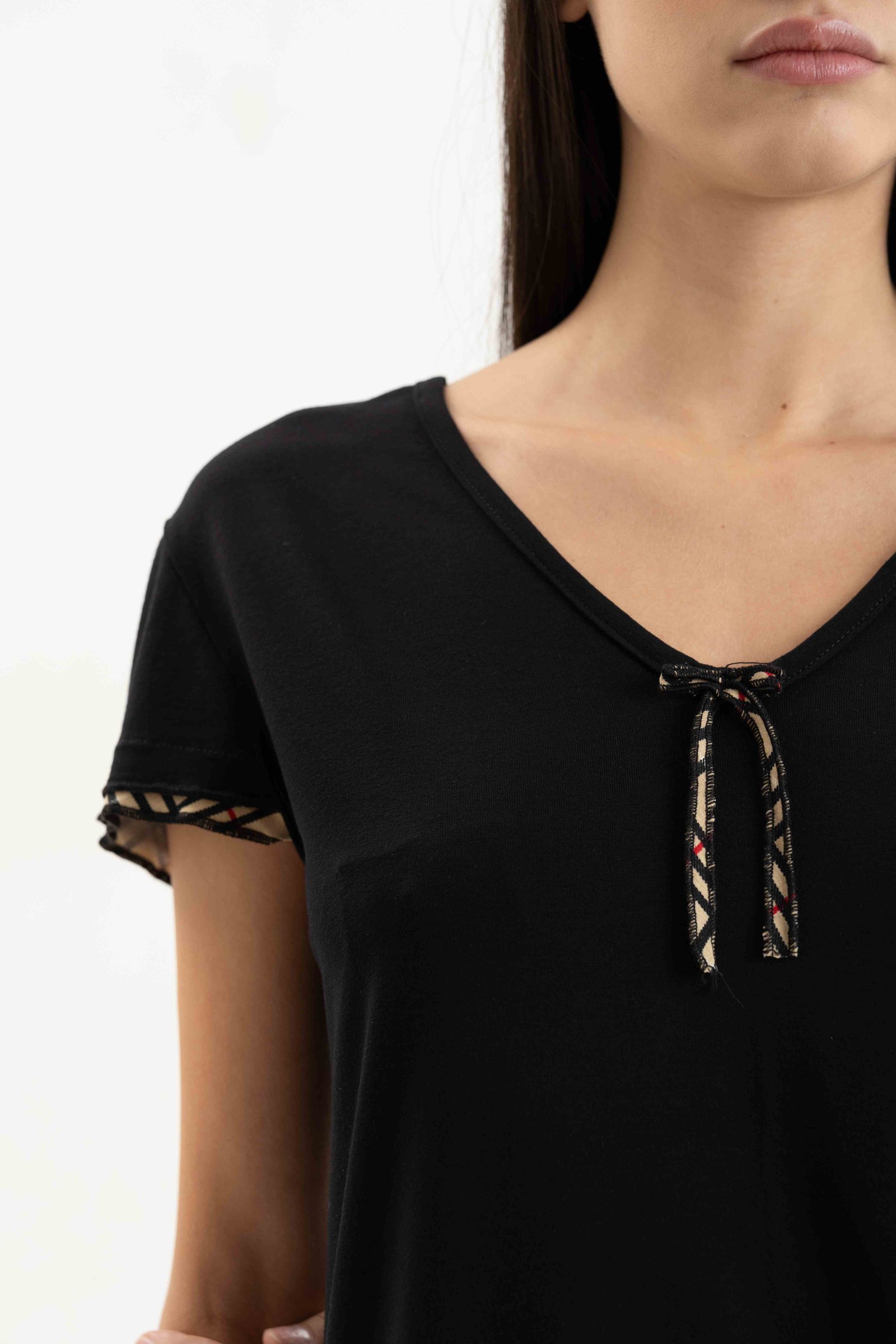 Το πάνω μέρος είναι κοντομάνικη μπλούζα με κόψιμο “V” στη λαιμόκοψη και την πλάτη.