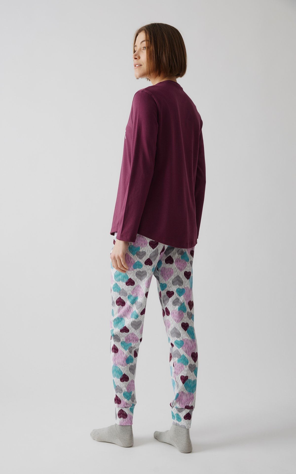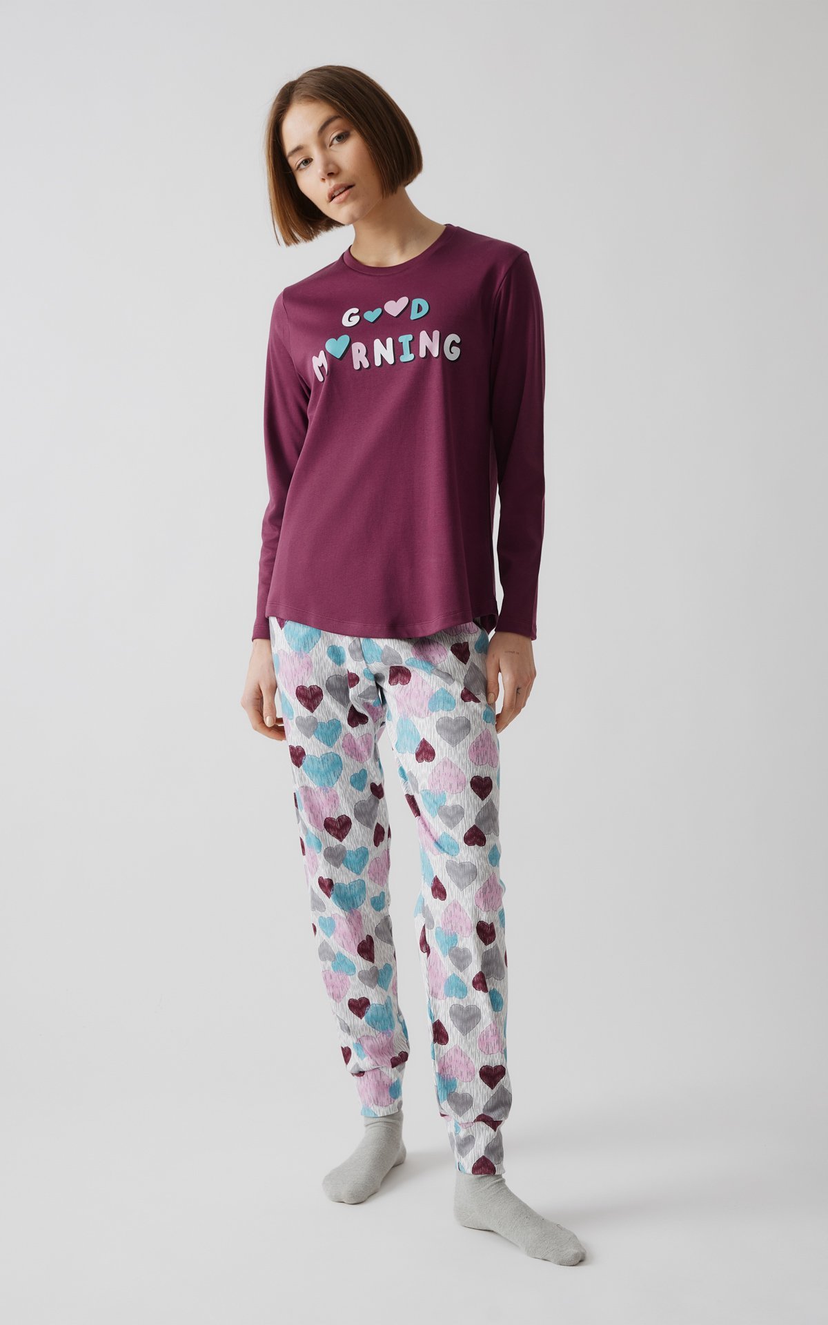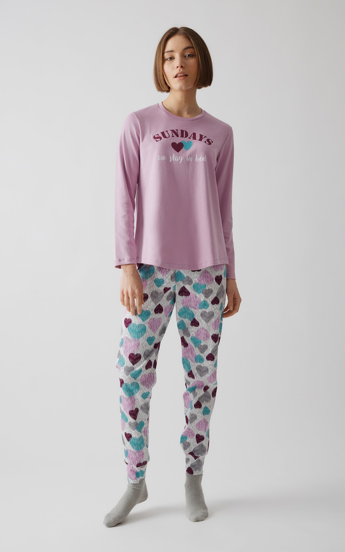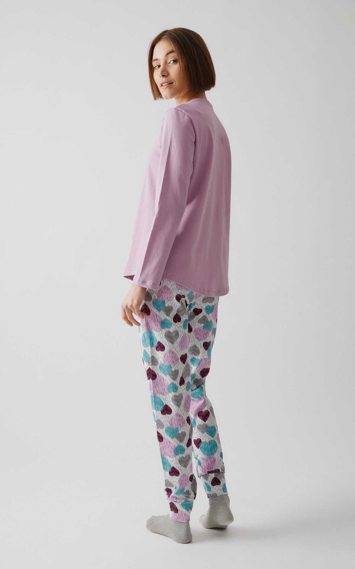 Μονόχρωμη πυτζάμα με τύπωμα από 100% βαμβακερό ύφασμα πενιέ.
