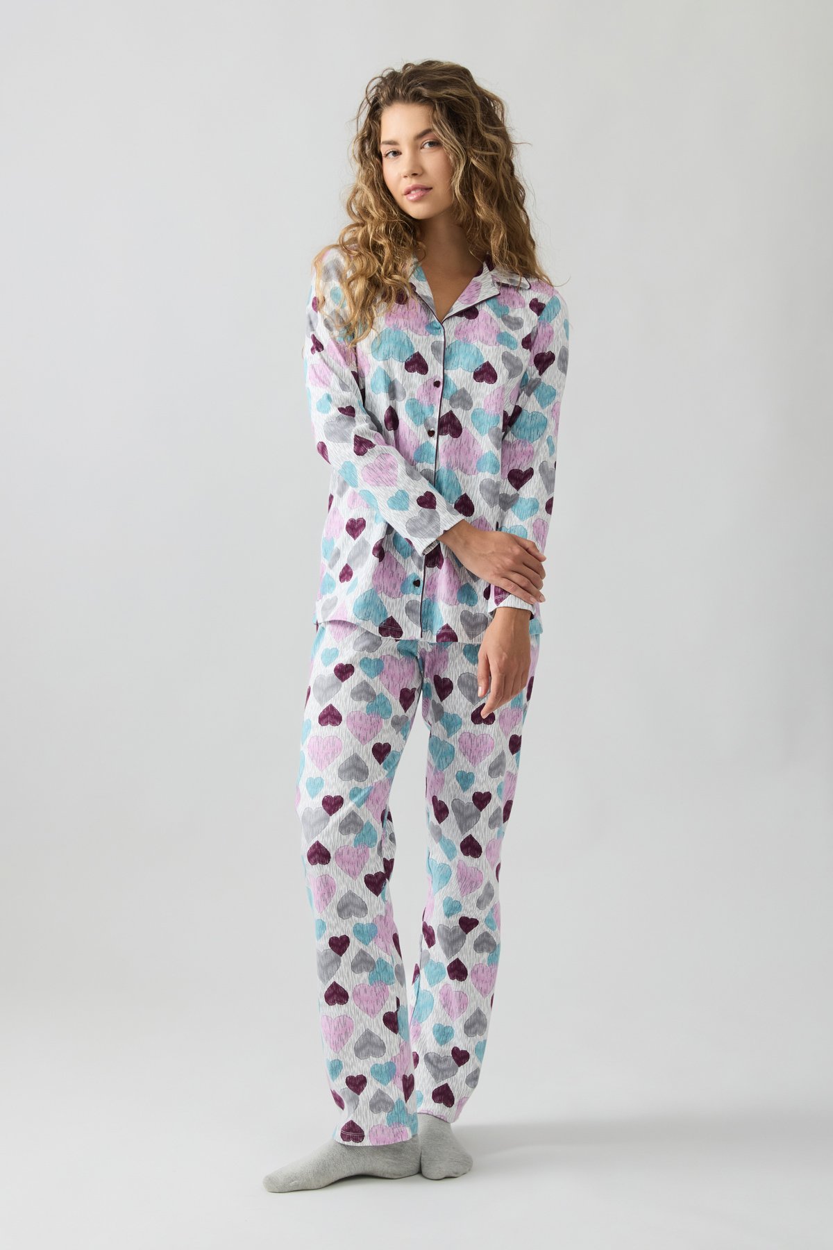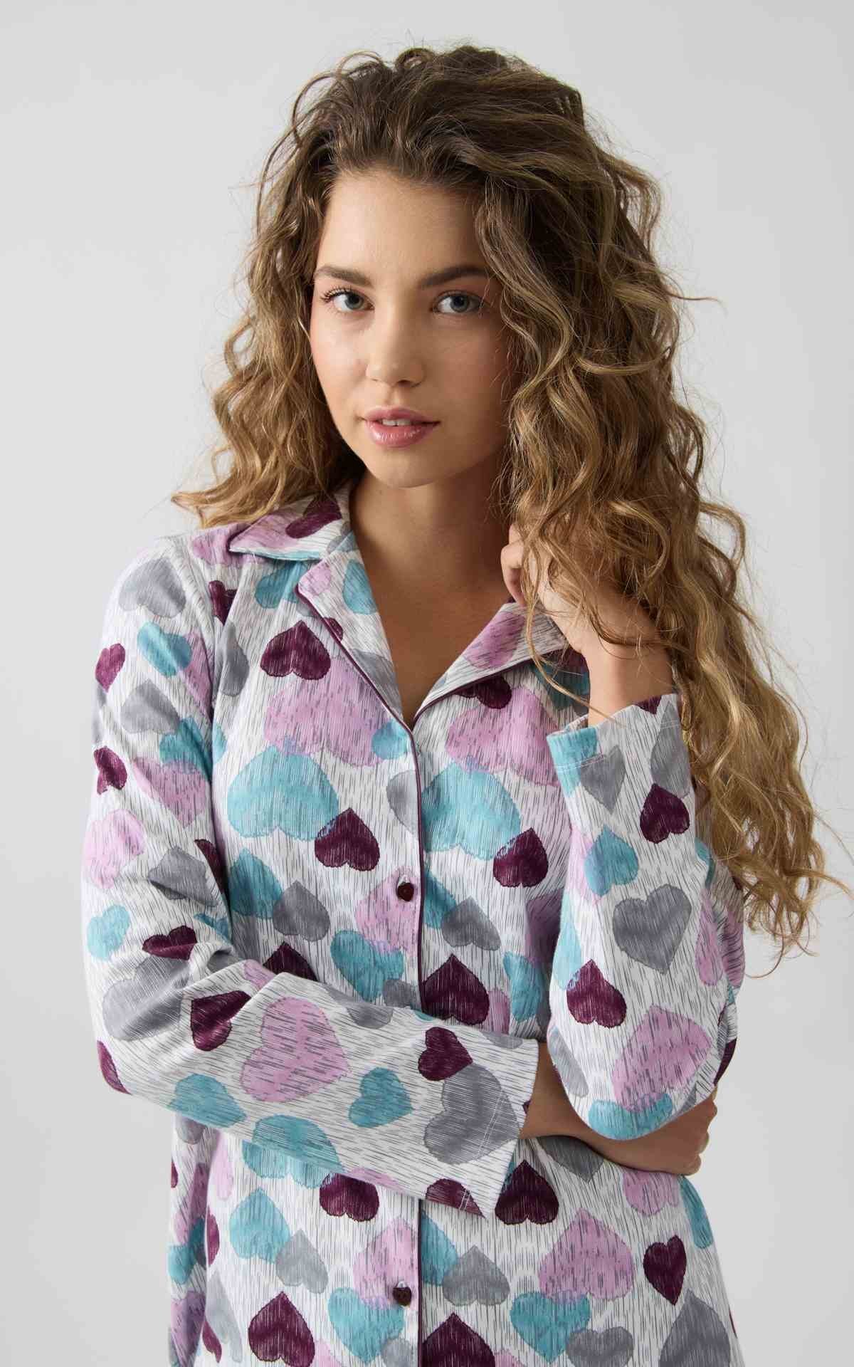 Εμπριμέ πυτζάμα από 100% βαμβακερό ύφασμα πενιέ.