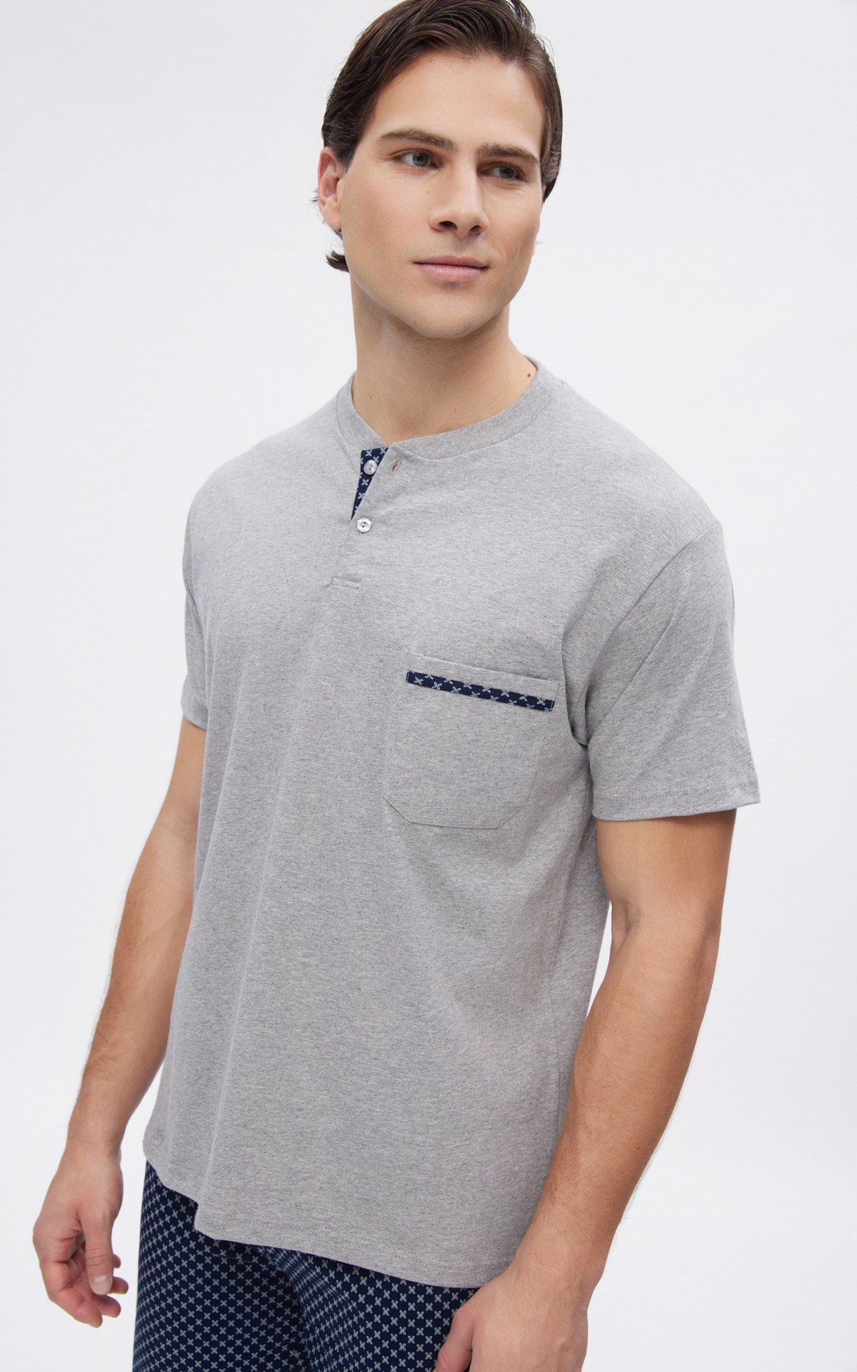 Το πάνω μέρος είναι κοντομάνικη μπλούζα με πατιλέτα από 2 κουμπιά.