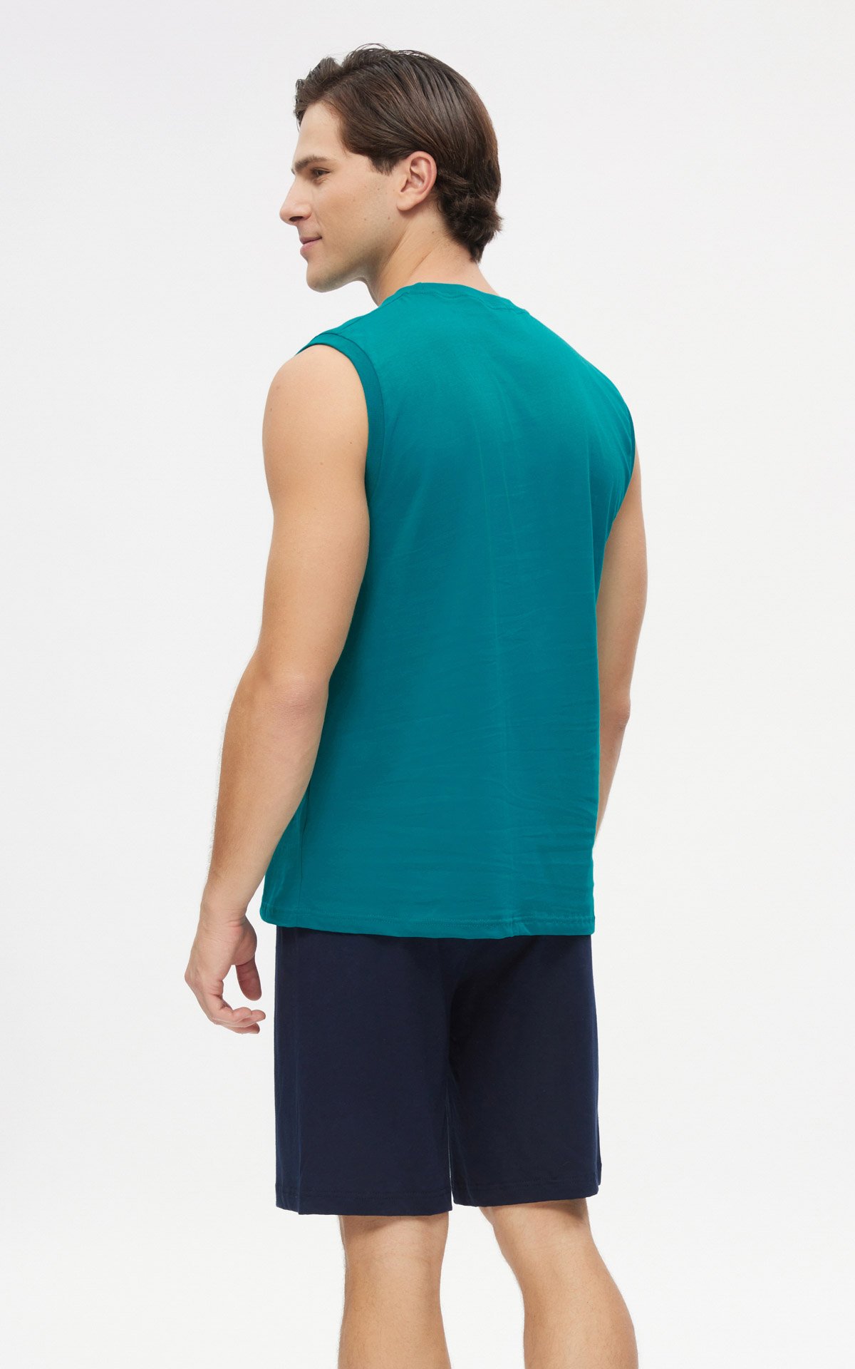 Το κάτω μέρος είναι μονόχρωμη βερμούδα με φαρδύ λάστιχο στη μέση.