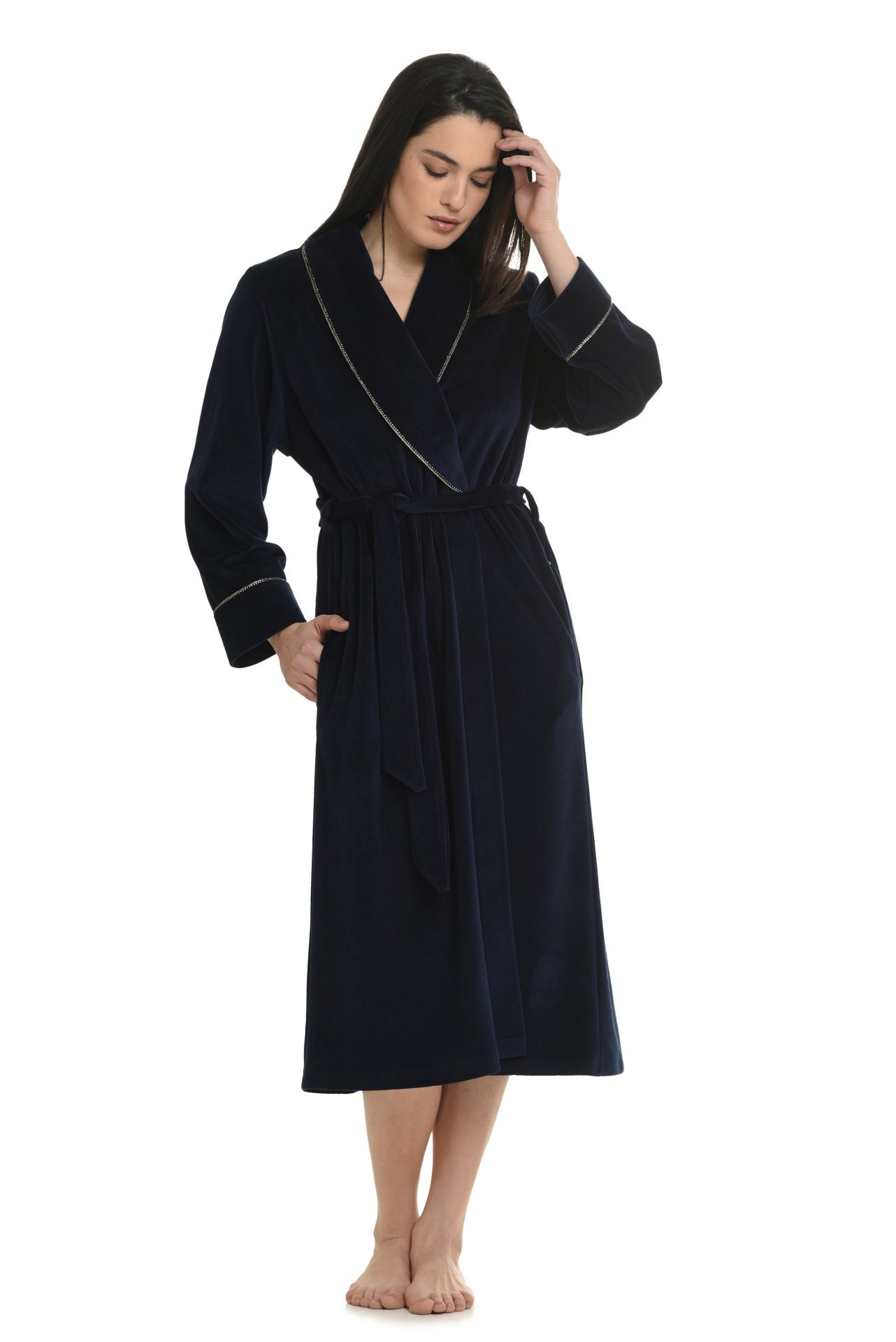 Μονόχρωμη ρόμπα από βελούδινο ύφασμα.