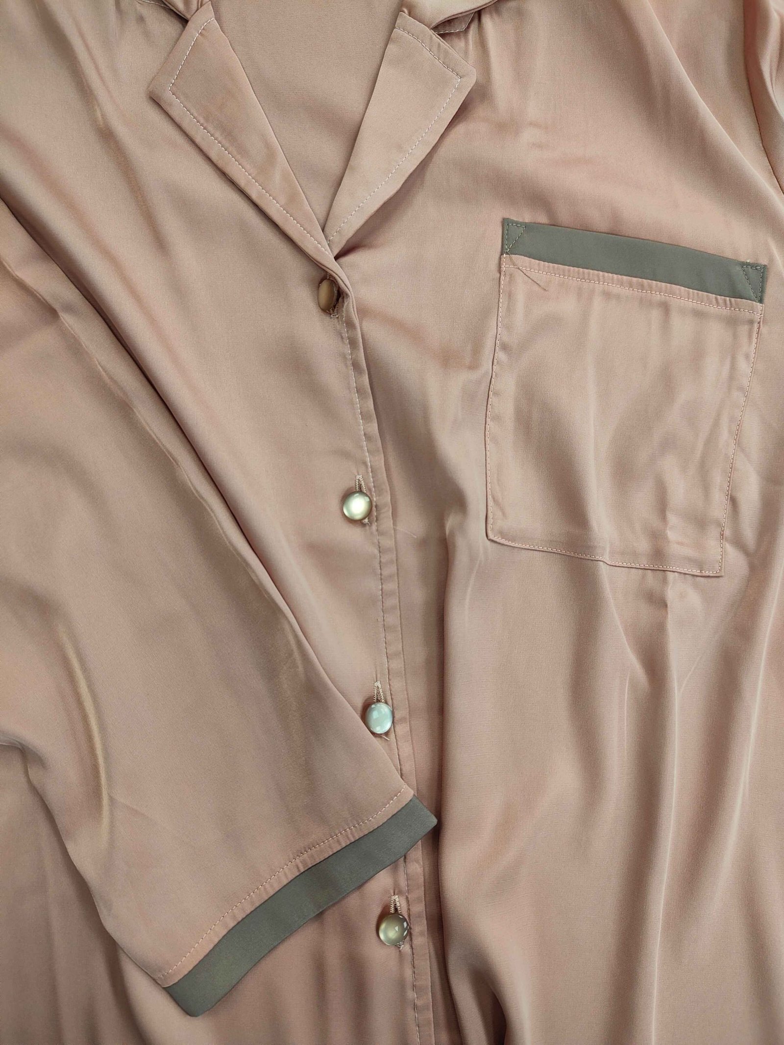 Το κάτω μέρος είναι μακρύ παντελόνι με φαρδύ λάστιχο στη μέση και διχρωμία στο τελείωμα.