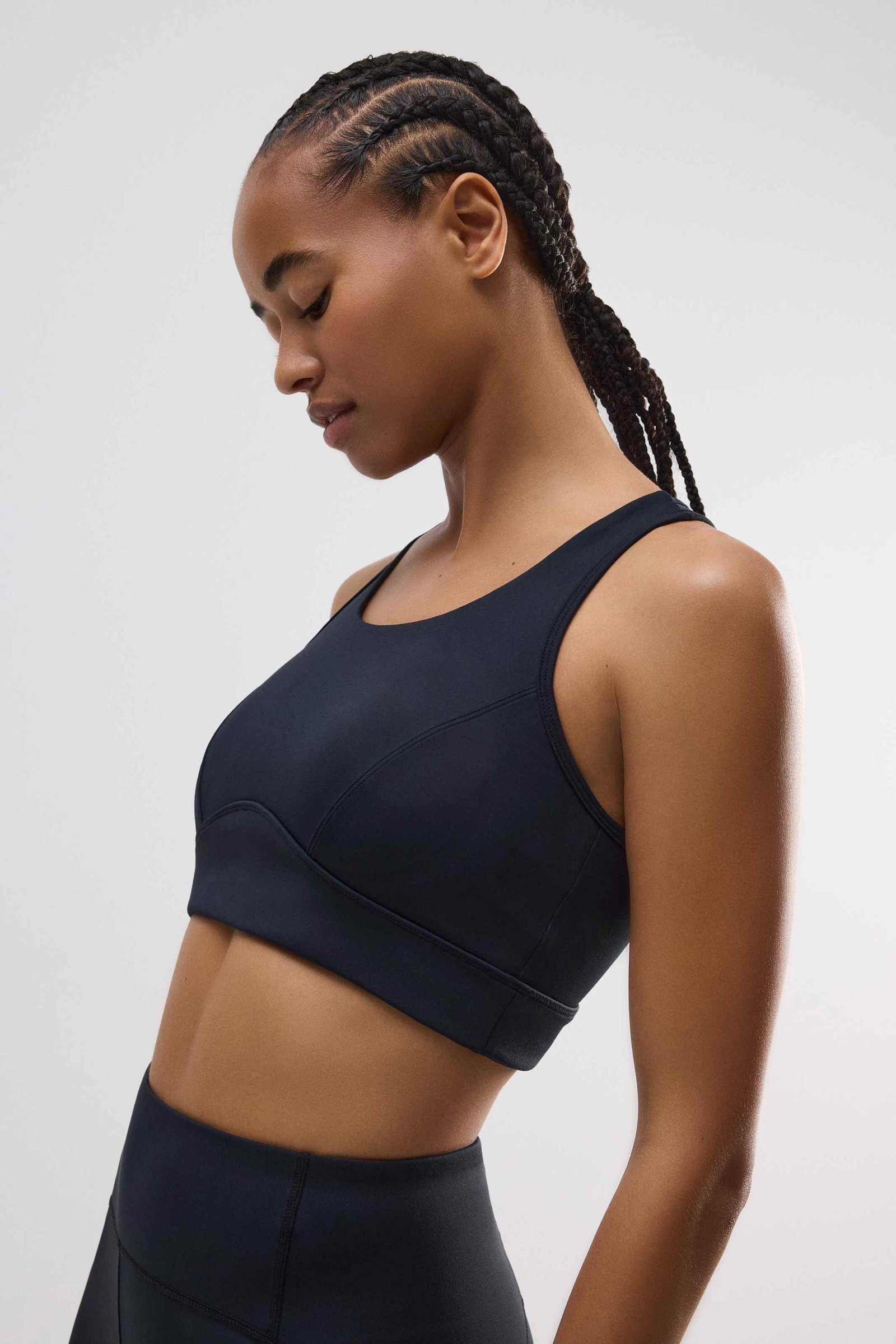 Μπούστο από ελαστικό, σφιχτό ύφασμα με φαρδύ ώμο και αθλητική πλάτη.