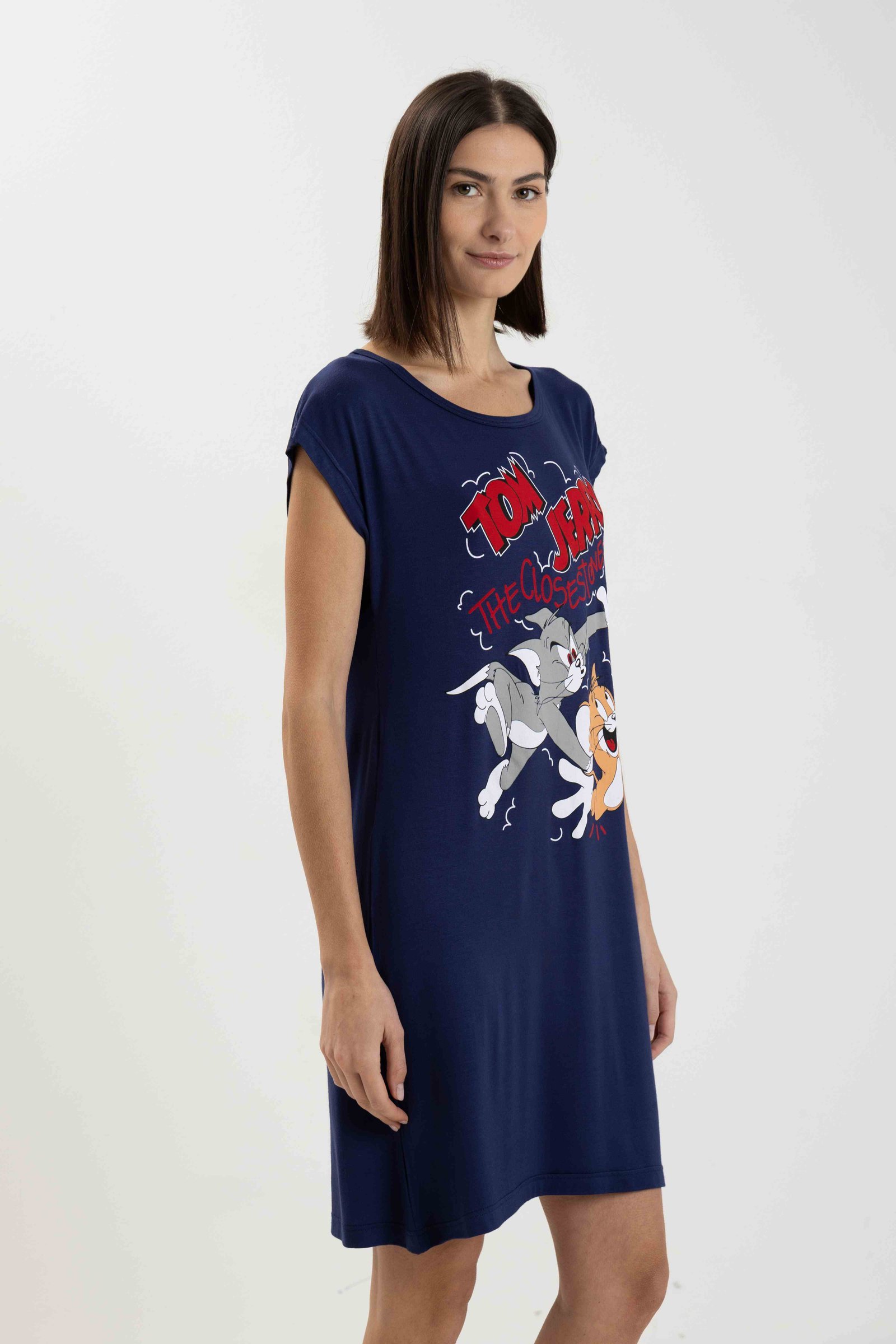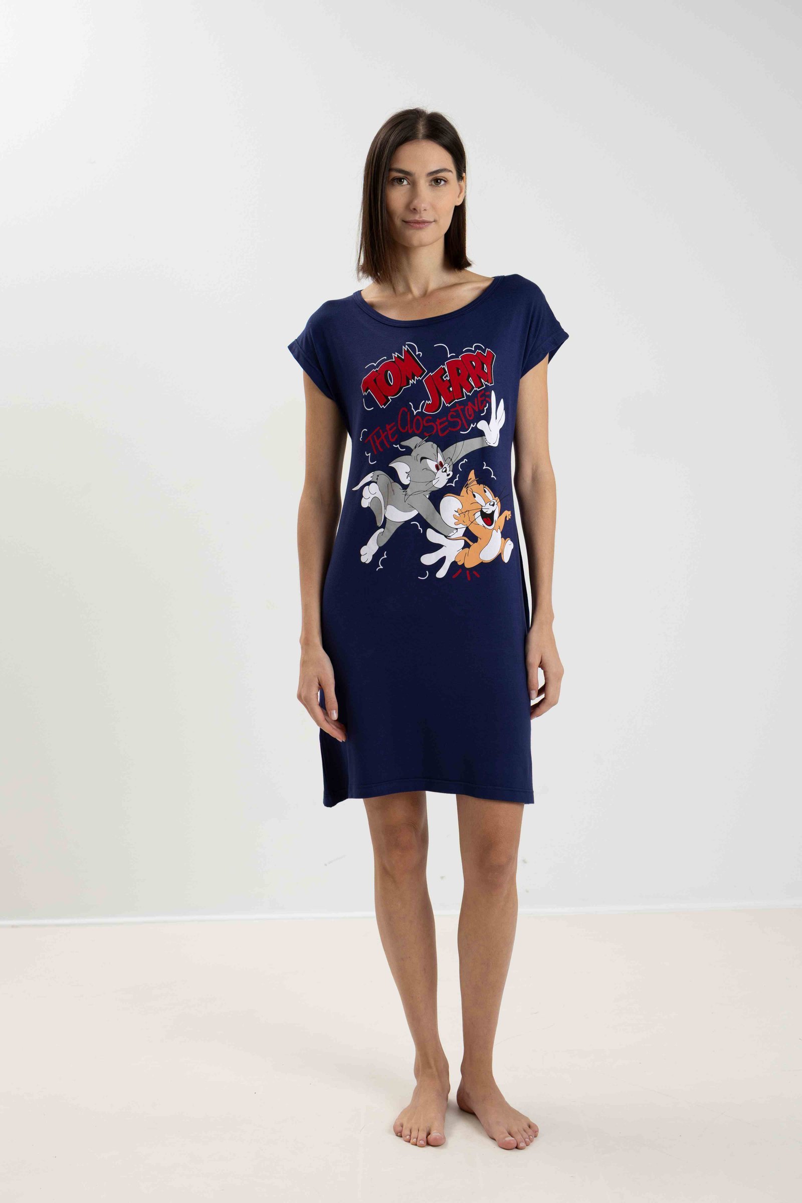 Μονόχρωμο φόρεμα με στρογγυλή λαιμόκοψη και τύπωμα με τους αγαπημένους μας ήρωες.