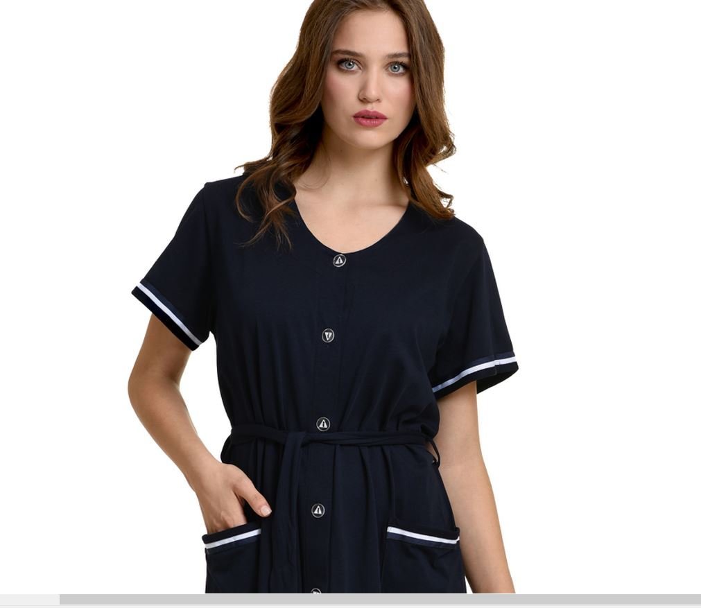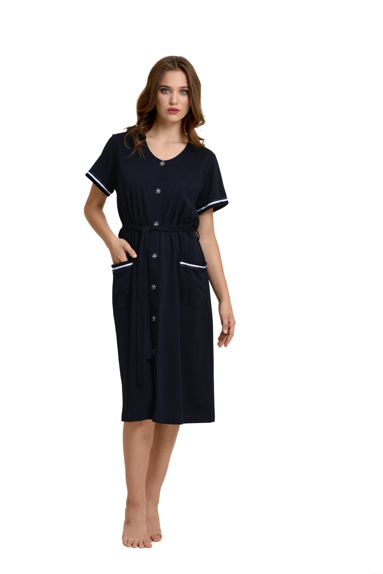 Κουμπωτό ρομπάκι σε όλο το μήκος του και υφασμάτινη ζώνη στη μέση.