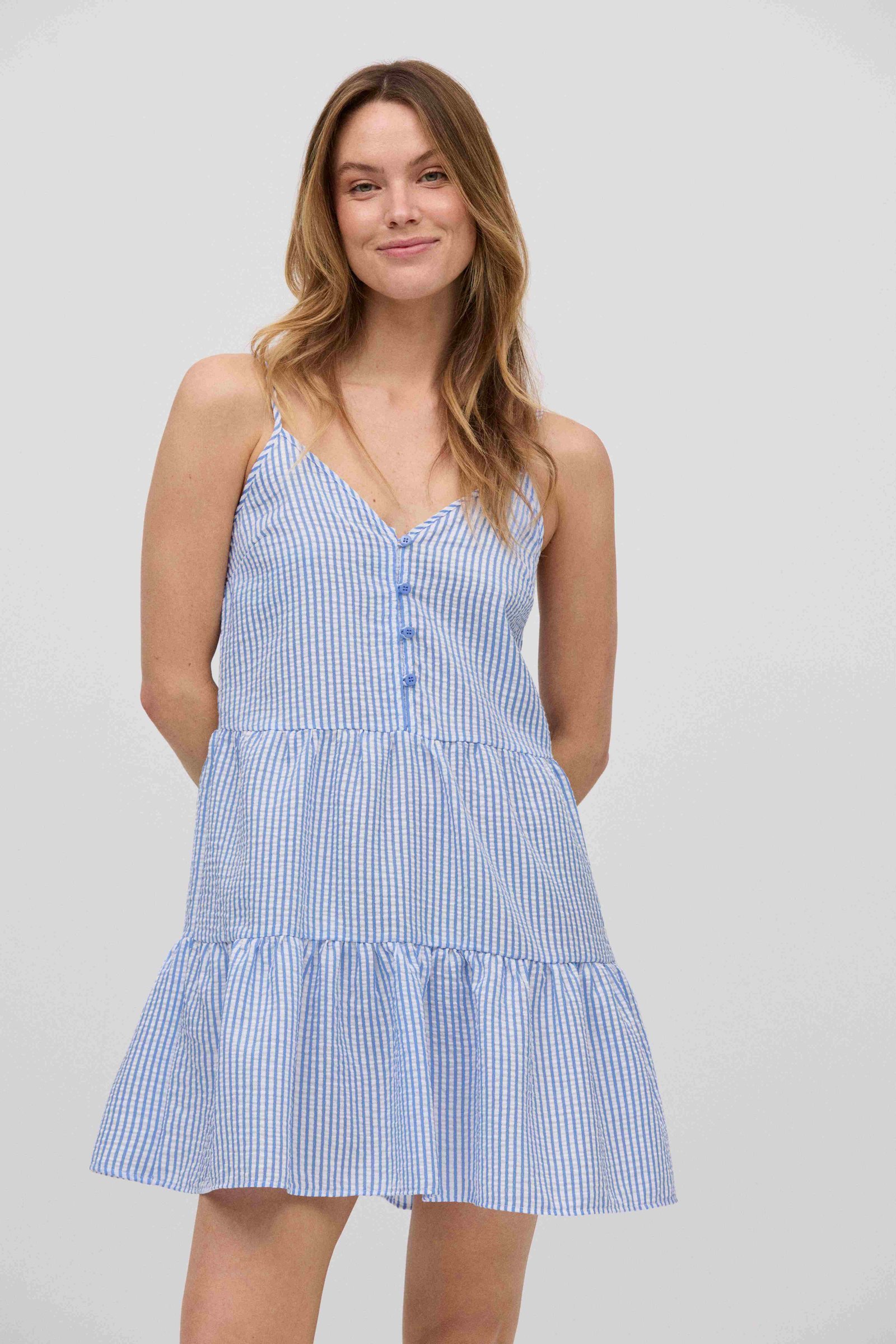 Ριγέ φόρεμα με βολάν.