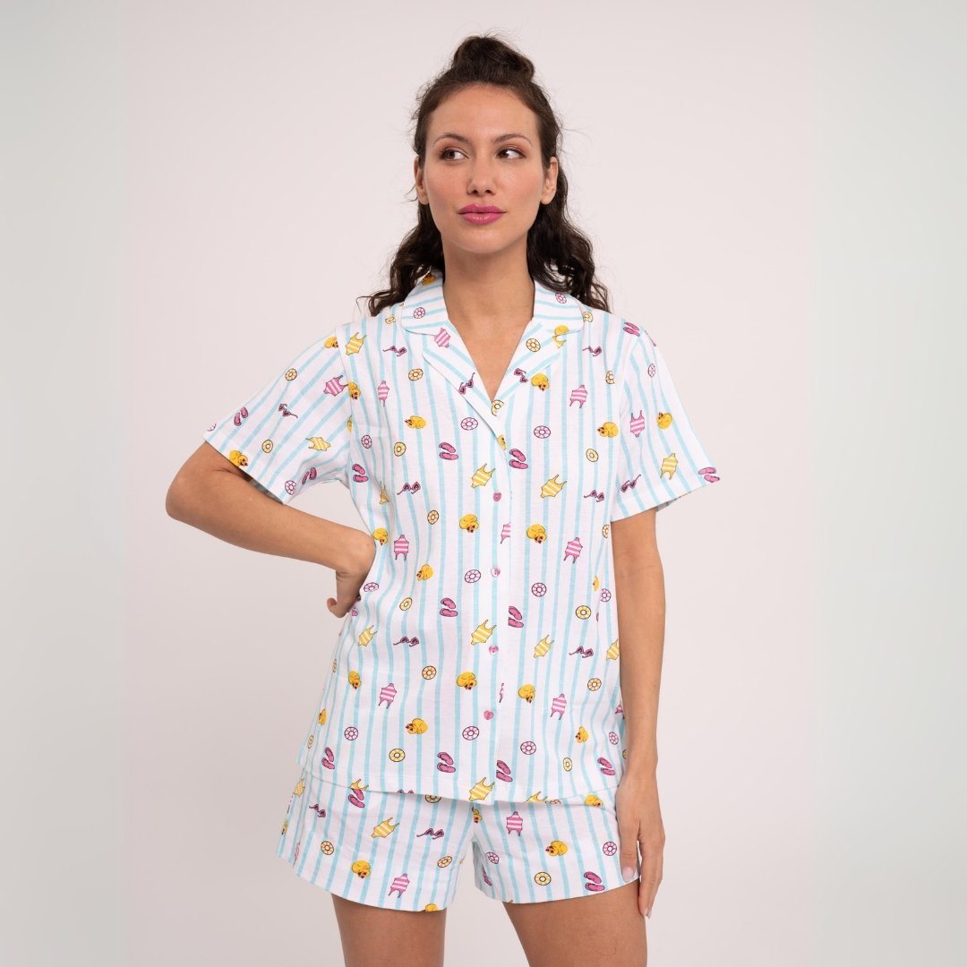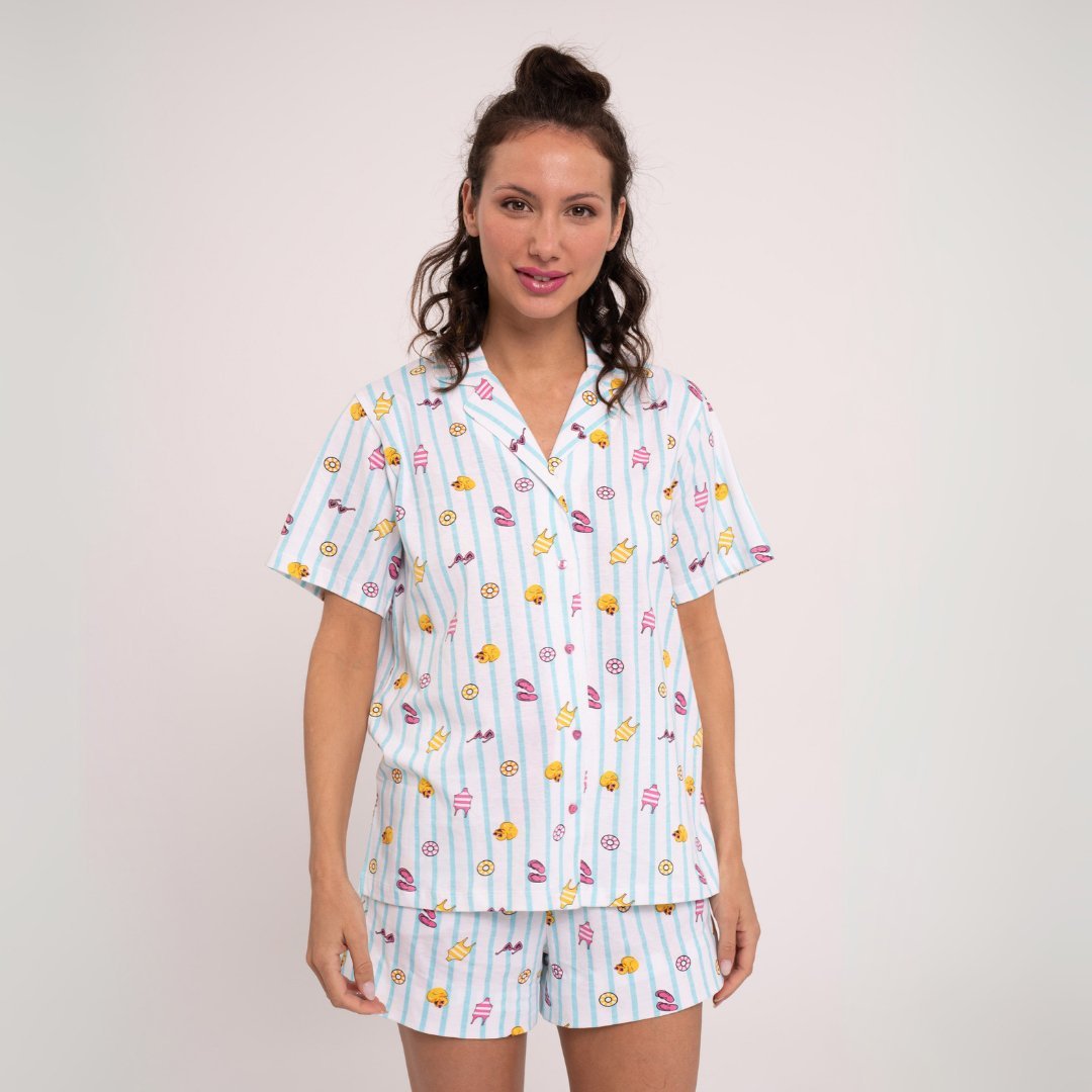 Εμπριμέ πυτζάμα από 100% βαμβακερό ύφασμα.