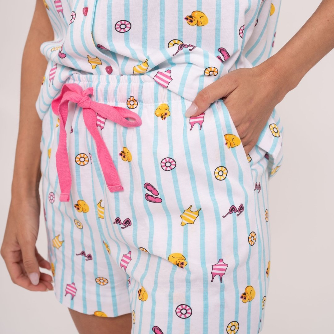 Το κάτω μέρος είναι εμπριμέ σορτς με το ίδιο σχέδιο.