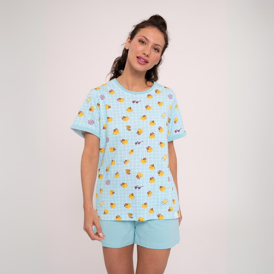 Σχέδιο με τετράγωνα και παπάκια σε όλο το ύφασμα.